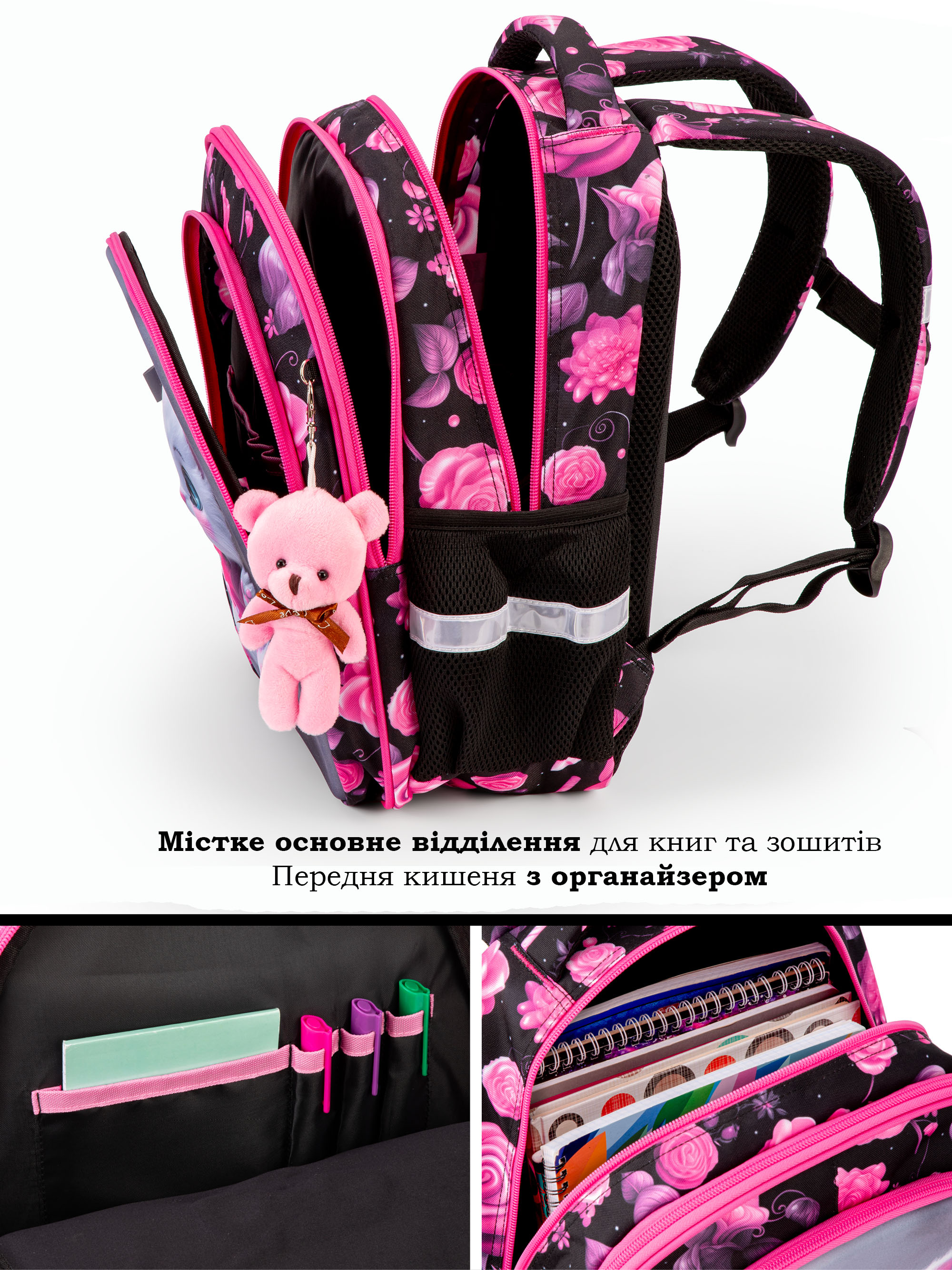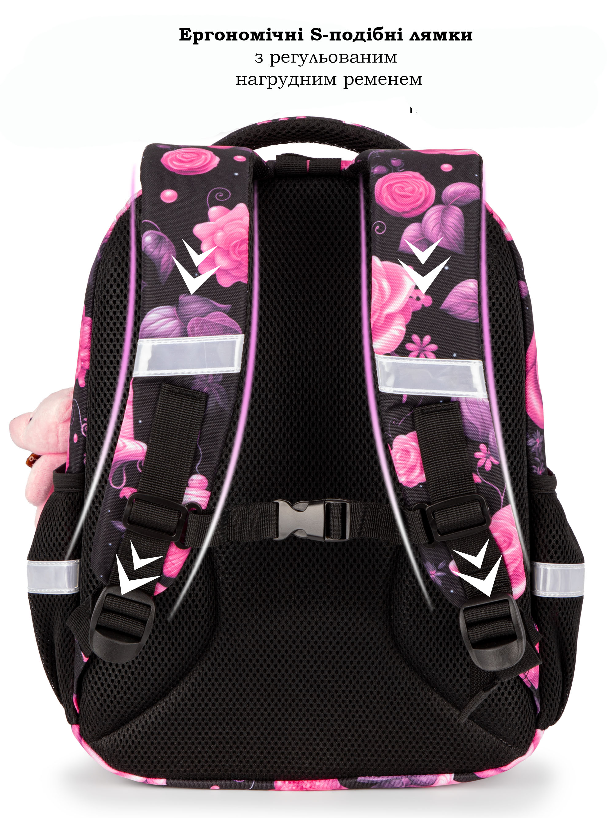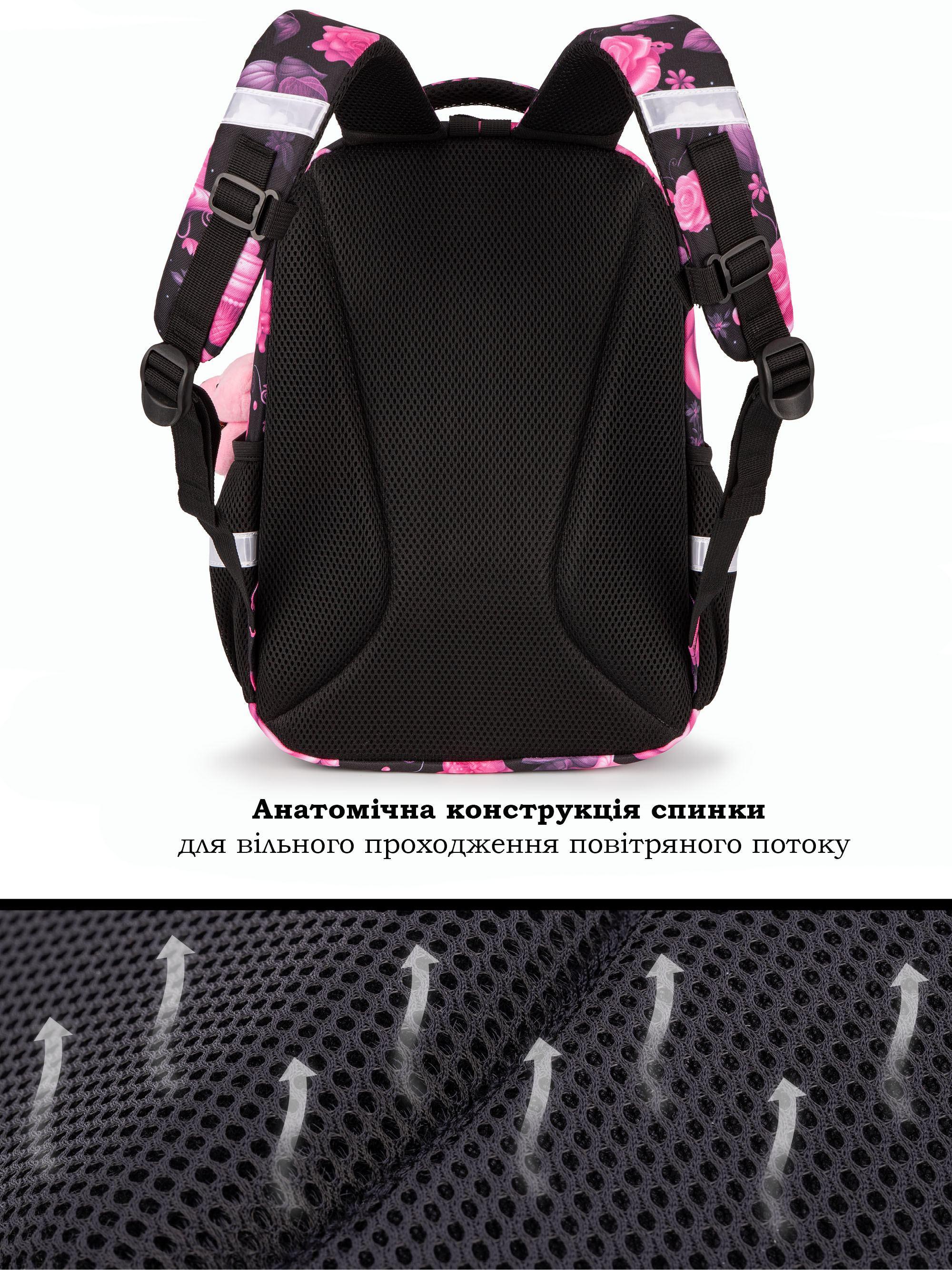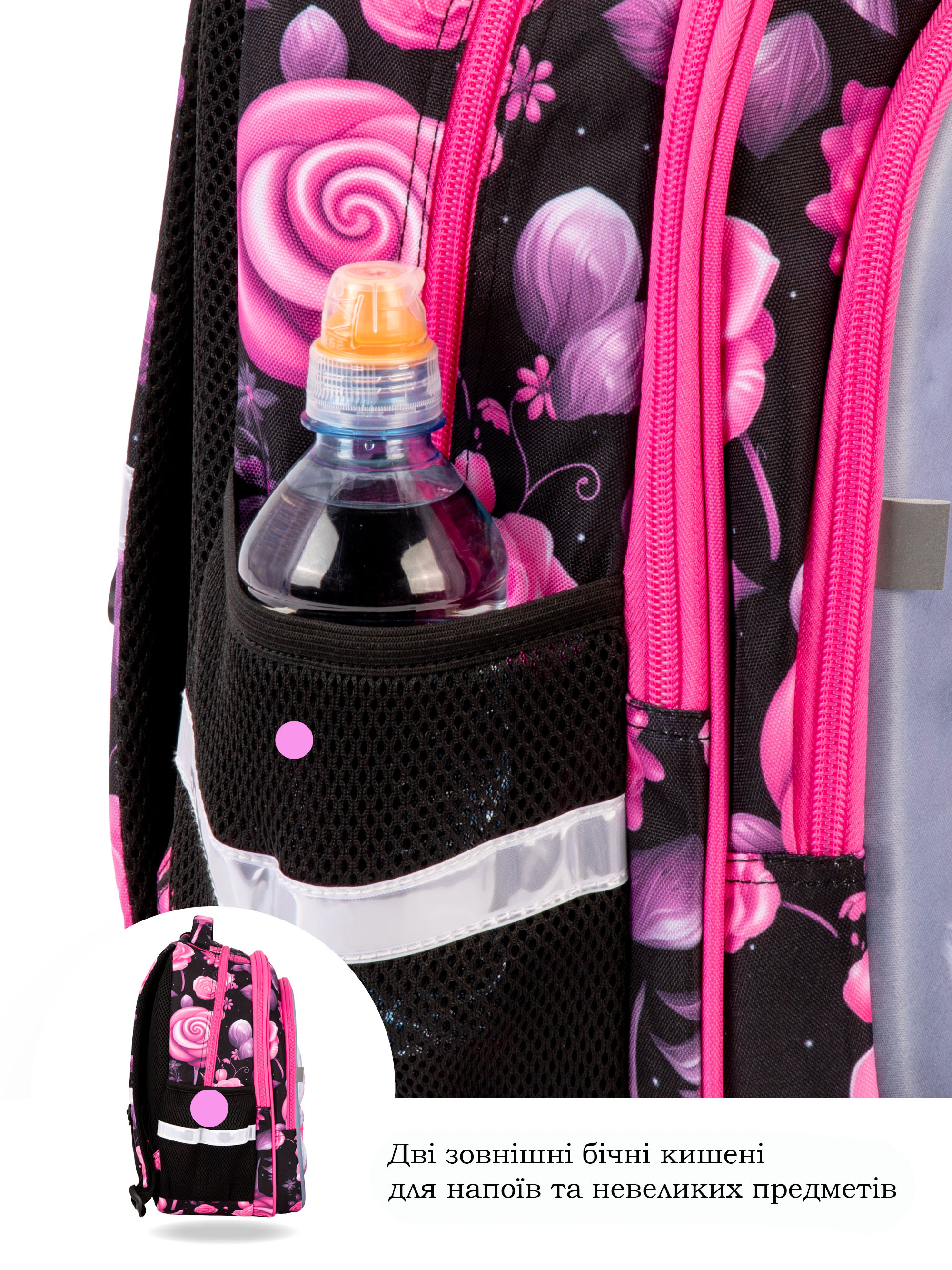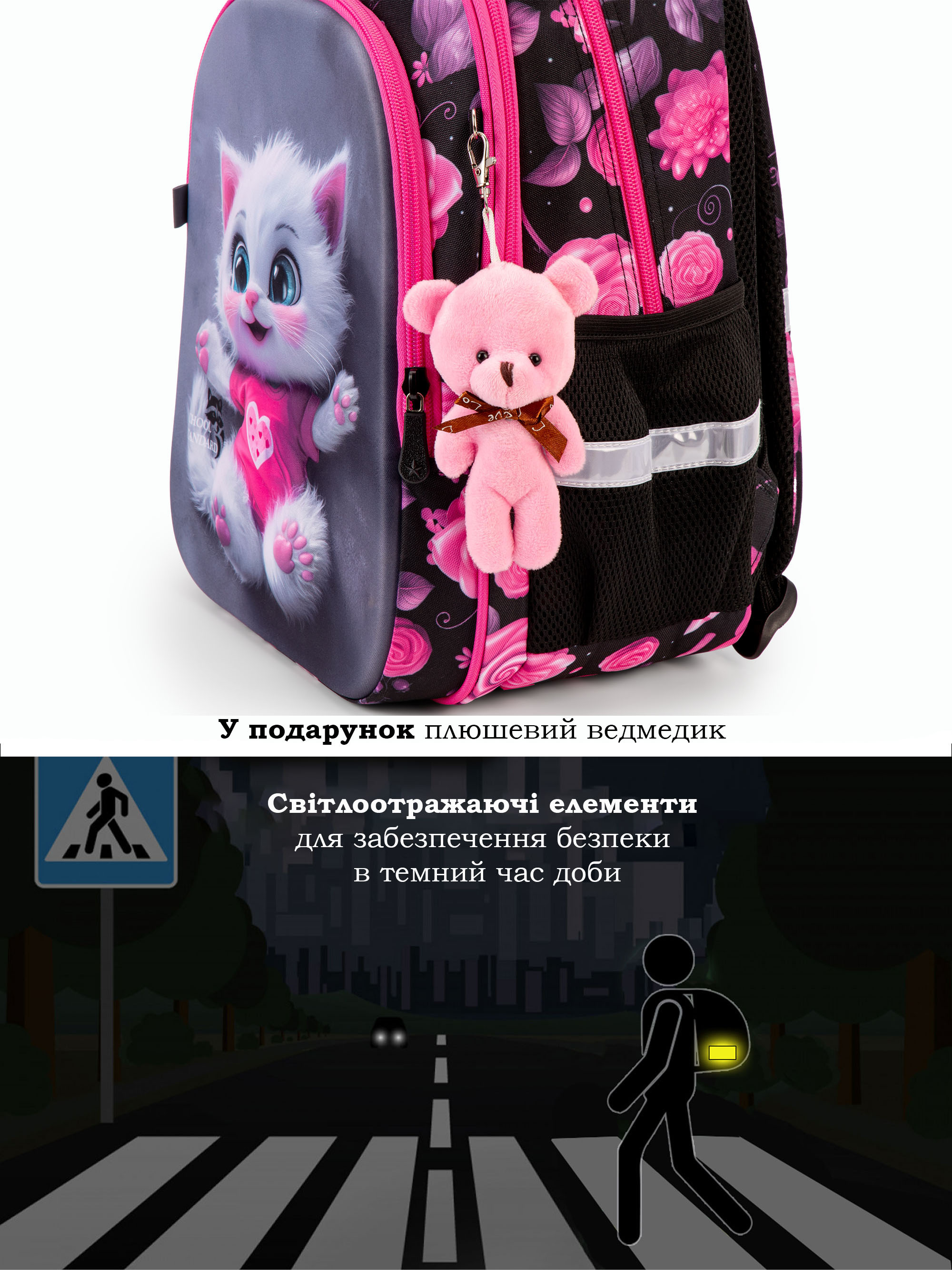 • Світловідбивні елементи спереду, ззаду та з боків шкільного рюкзака