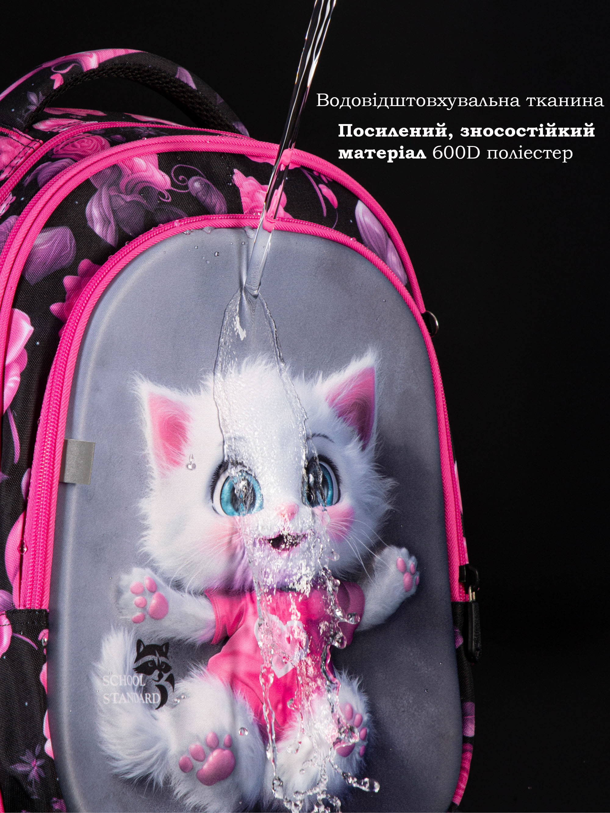 Детальний опис : Ортопедичний рюкзак до школи School Standard для дівчинки з Котиком 38х30х18 см для 1-4 класу (150-24)