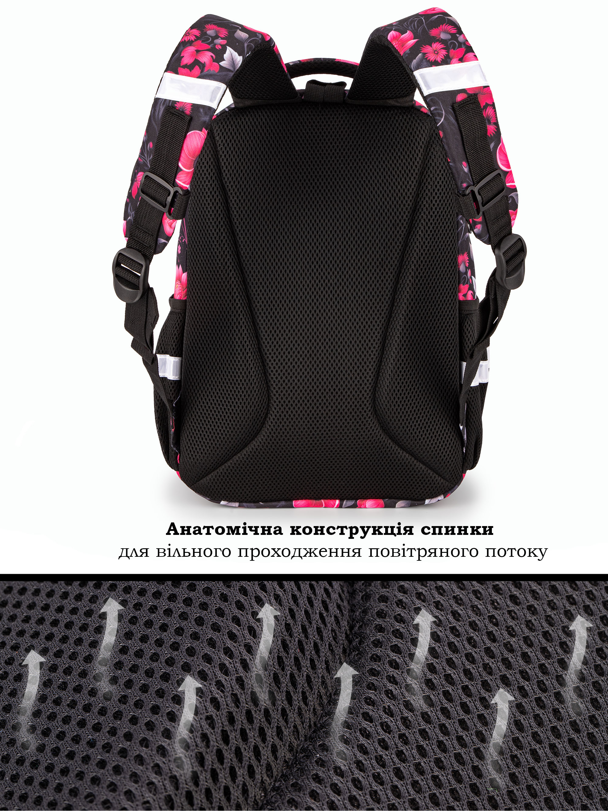 • Світловідбивні елементи спереду, ззаду та з боків шкільного рюкзака