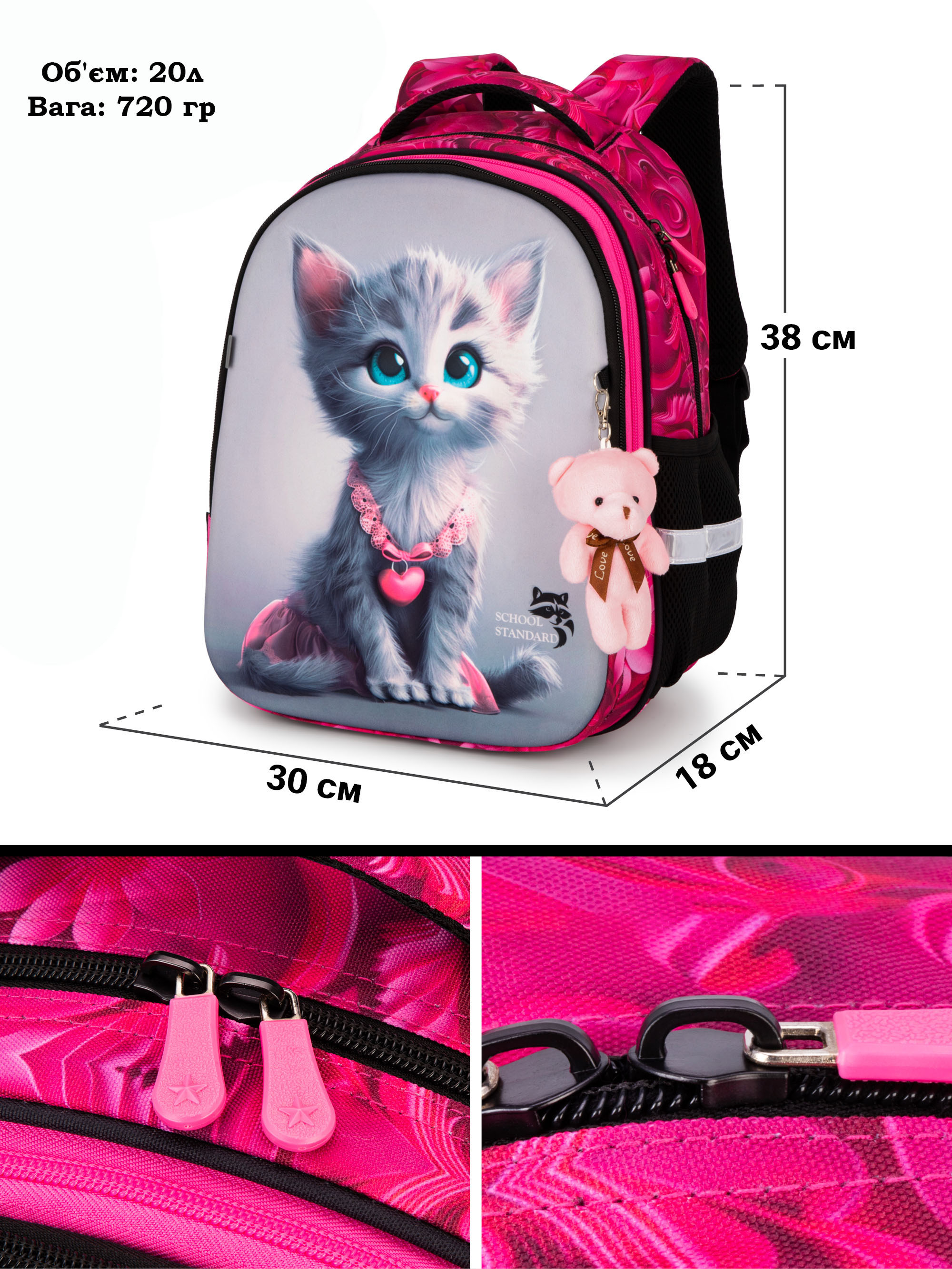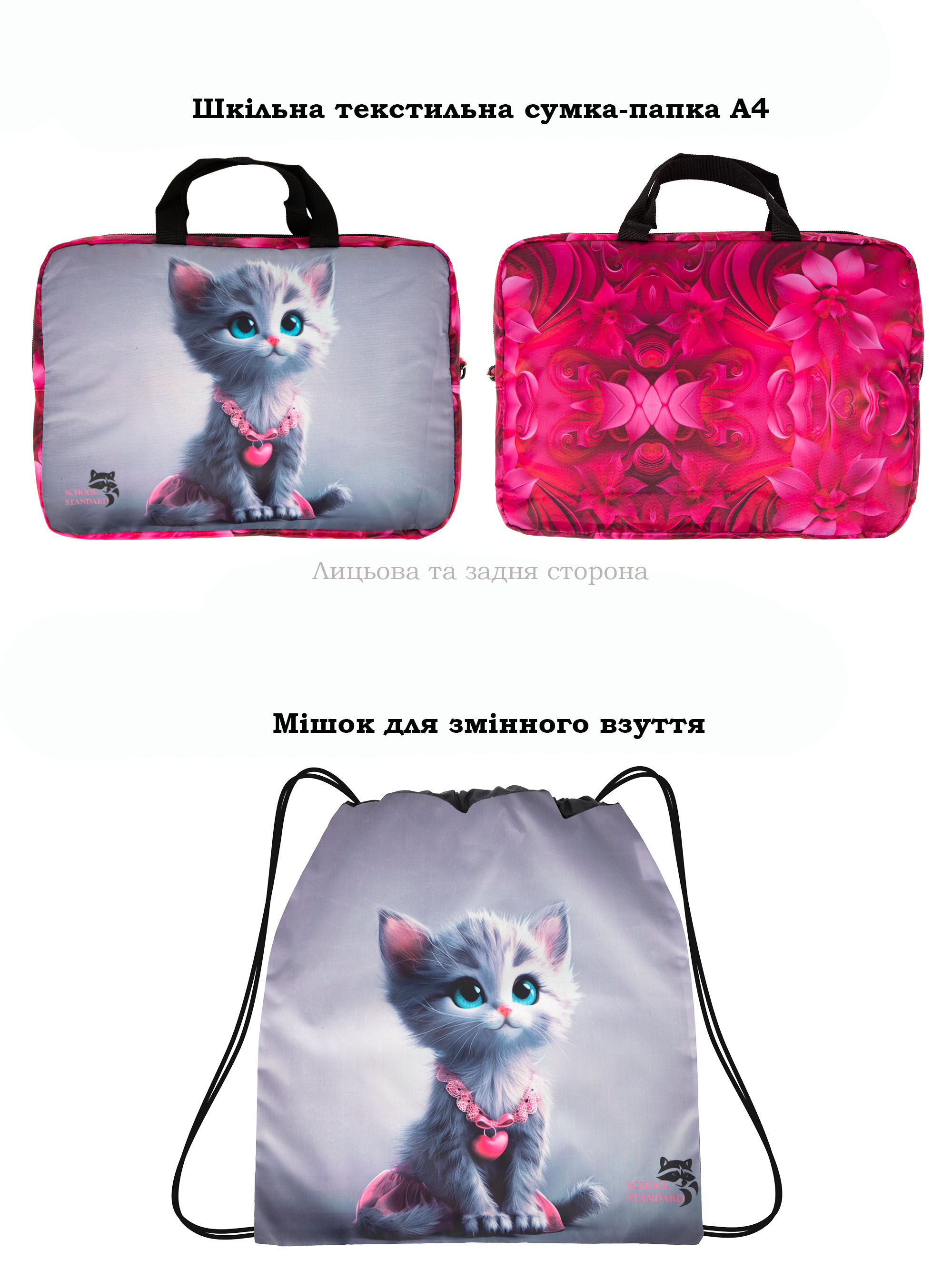 Мішок для змінного взуття для дівчинки з Котиком School Standard MSS-17