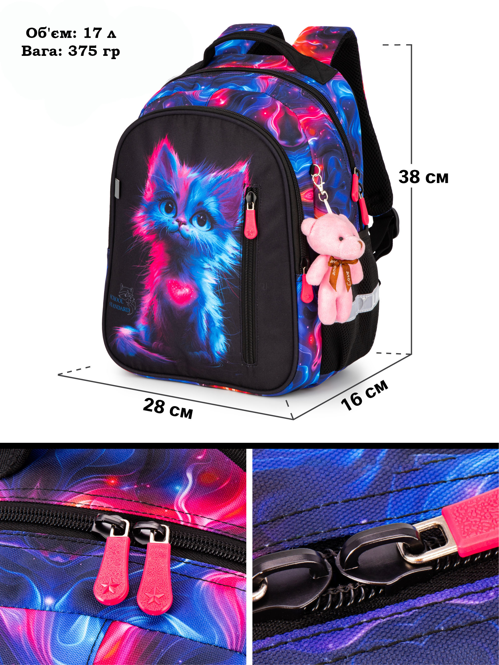 Детальний опис : Шкільний рюкзак School Standard для дівчинки з Котиком 38х28х16 см для початкової школи (160-8)