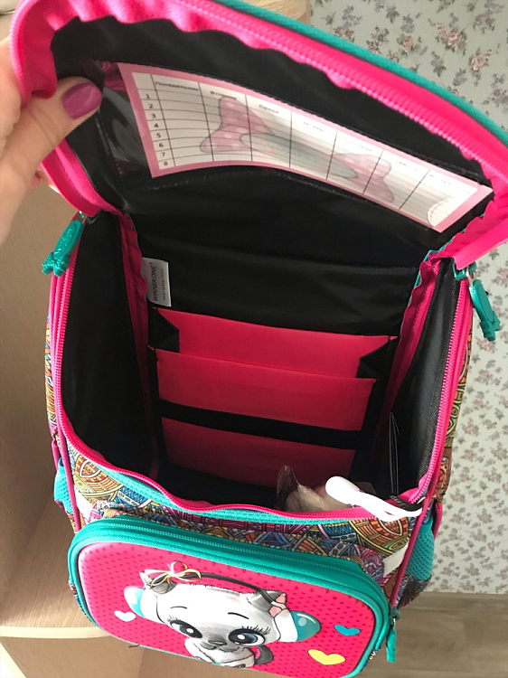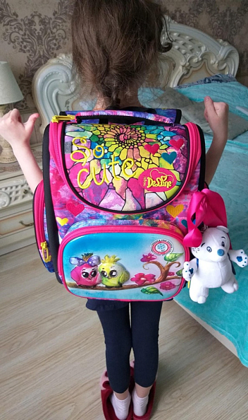 Рюкзак очень хороший!!!и спинка удобная и дно твёрдое,как и надо,отделений много,что очень важно,не будет всё в кучу свалено,всё предусмотрено,доя первоклашки отлично!!легкий!!!производителям спасибо!!!качество всё идеально!!